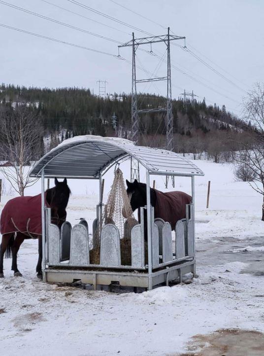 Her har vi en koselig elevstall med plass til ni hester med blant annet store, romslige salskap i oppvarmet salrom og tørkerom for dekken. Vi har store luftegårder hvor hestene får gå i små flokker på 2 til 4 hester med tilgang til frostfritt vann hele året, samt fri tilgang på enten halm eller grovfôr. Det vil være mulig å bruke egen hest i undervisning. I tillegg har skolen mange fine turmuligheter i nærområdet.